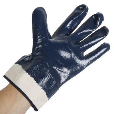 Перчатки маслобензостойкие, без рисунка, синяя основа, манжет крага, Нитрил, Золотая перчатка