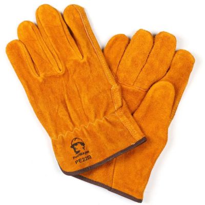 Перчатки-краги спилковые, без рисунка, желтая основа, укороченные, 25 см, Профессионал