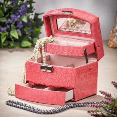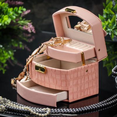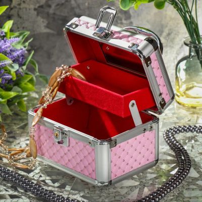 Шкатулка-кейс для украшений и косметики, полимер, 15х12х11 см, розовая, Y4-5319-1