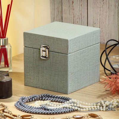 Шкатулка-сундук для украшений и косметики, искусственная кожа, 15х15х15 см, серая, Y4-5152/Y4-5153