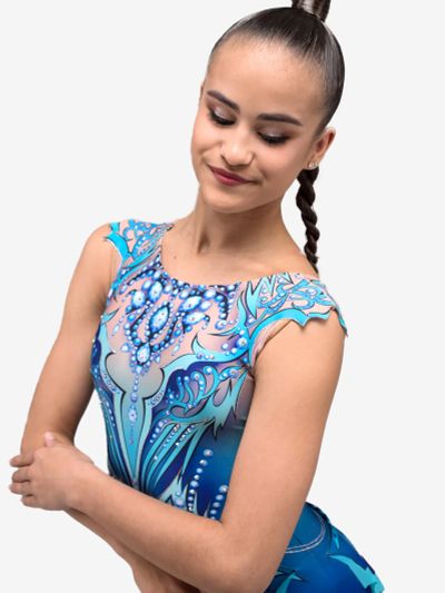 Купальник гимнастический для выступлений Танцующие, Голубой